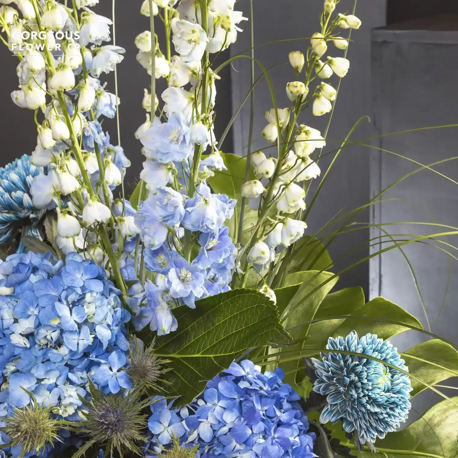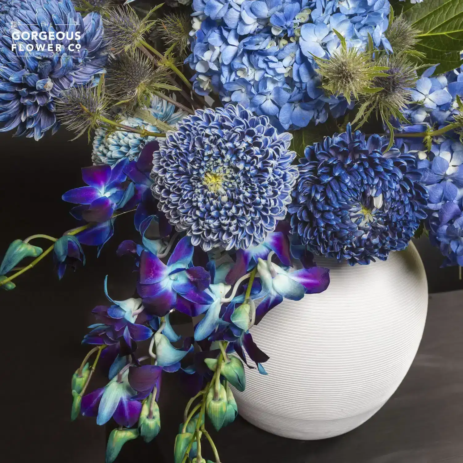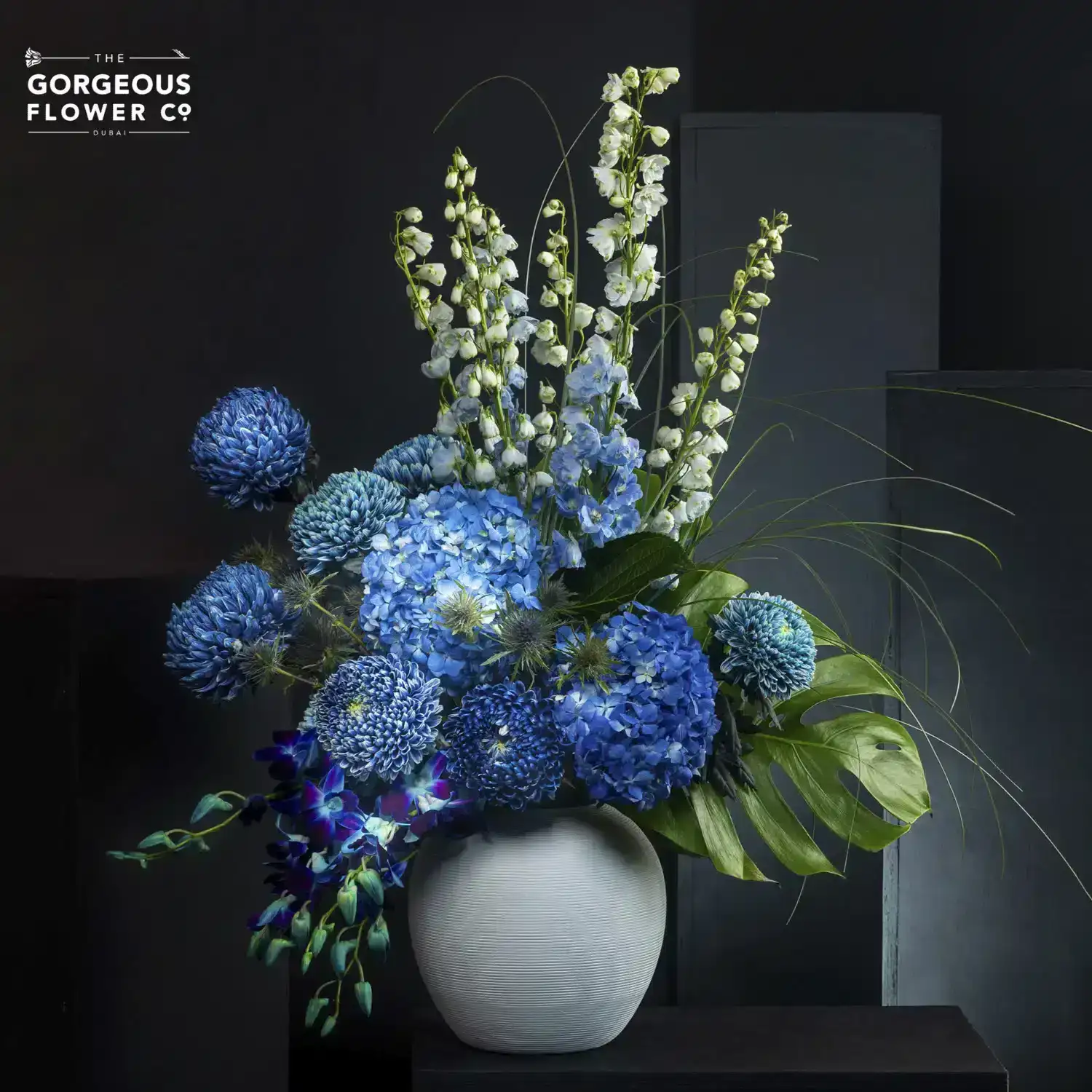 As rare as a moment of perfect clarity, this serene blue arrangement cuts through the noise, offering peace and truth.
