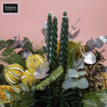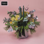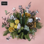 A cozy winter blend of pine, Nobilis, silver-painted Eucalyptus, dried Orange slices and Cinnamon, finished with natural Pinecones warm, rustic and festive.