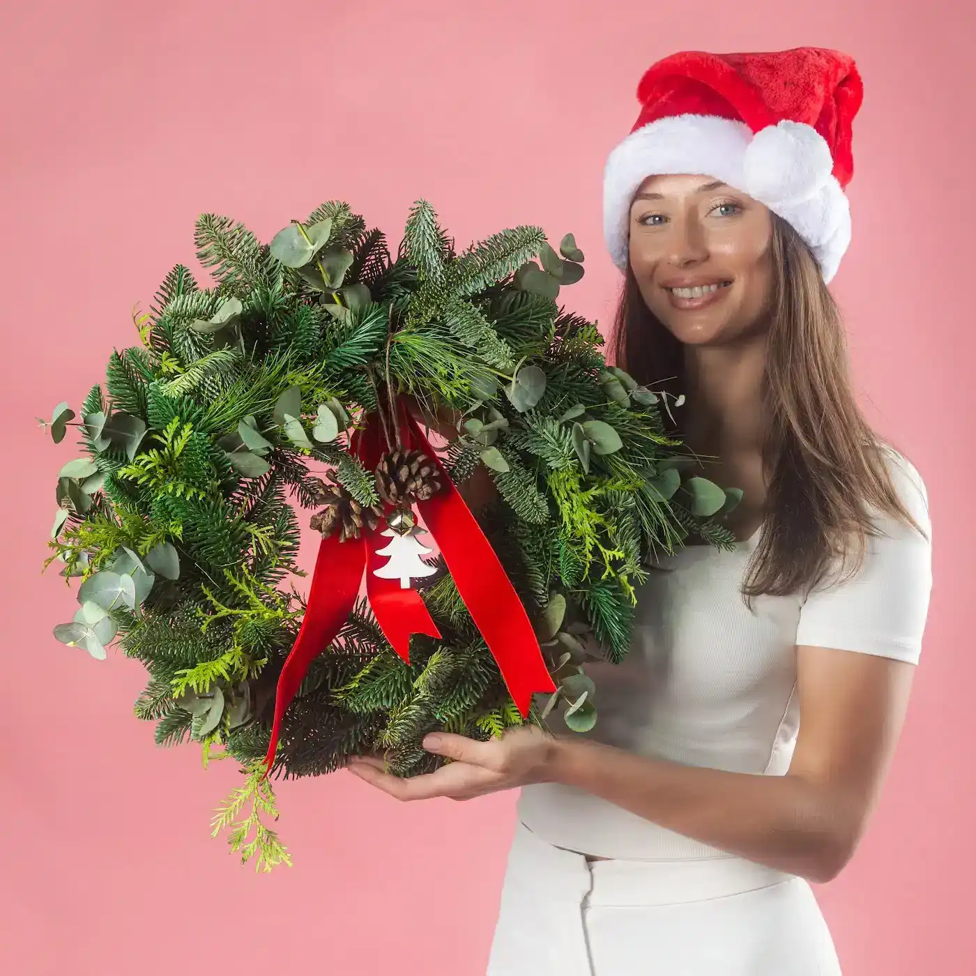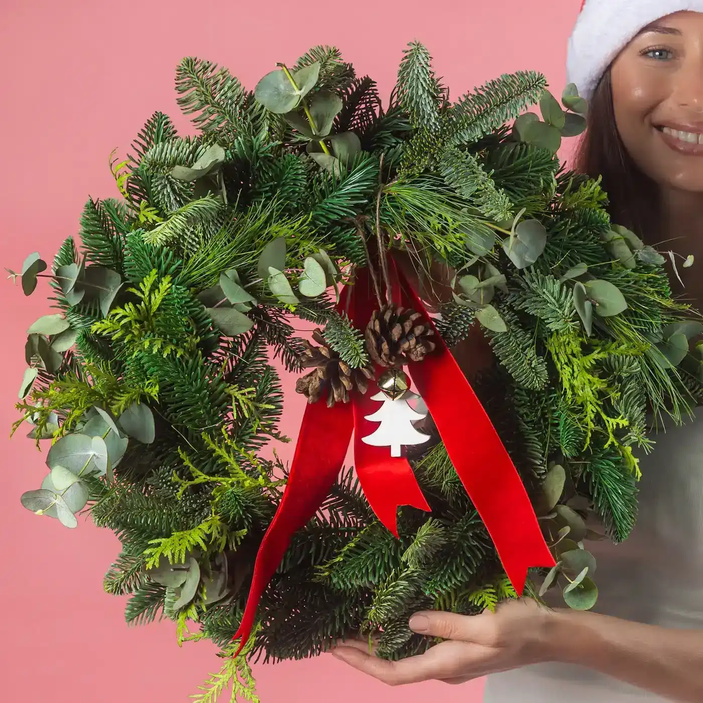 Approximate wreath size is 50cm. Foliage may differ slightly from image.