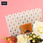 A luxury Ramadan tray inspired by the sacred fruits of Jannah, featuring pomegranate, premium dates, soft florals, olive leaves, wheat, and a glowing mosque accent ,send it to your family and friends this Ramadan with same-day delivery.