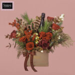 A glamorous arrangement overflowing with rich red Roses, vibrant Ilex berries, crimson Conifer, Pine leaves, Nobilis, and Eucalyptus, artfully designed in an opulent box to embody the warmth and magic of the season.