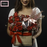 A luxurious Valentine’s floral arrangement set in a beautiful box, featuring deep red and blush pink Roses, soft pink Wax flower, and delicate Astilbe. Paired with a luxurious sparkling gift to make her shine , with free same-day delivery across Dubai and a 5 day freshness guarantee.