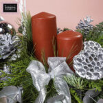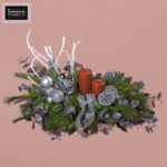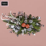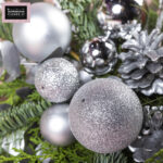 A festive blend of Nobilis, pine leaves, conifers, eucalyptus, and snow-dusted Betula, accented with pinecones, lotus pods, and sparkling Christmas baubles , perfect to bring warmth and charm to your holiday décor.