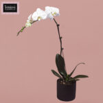 White Phalaenopsis Orchids in Black Ceramic Pot