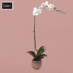 - White Phalaenopsis Orchids in Rose Gold Ceramic Pot