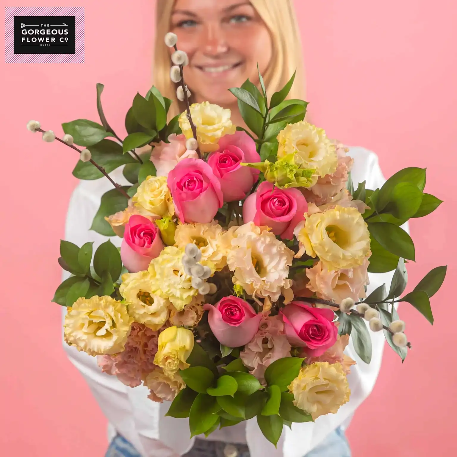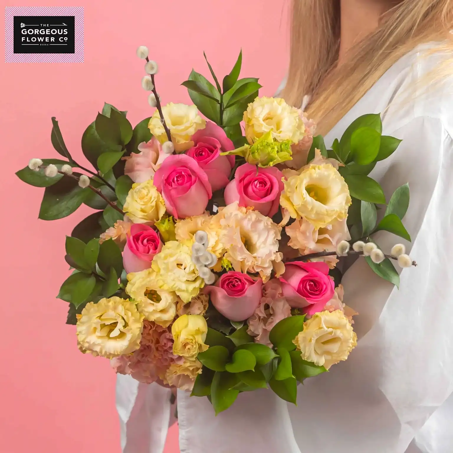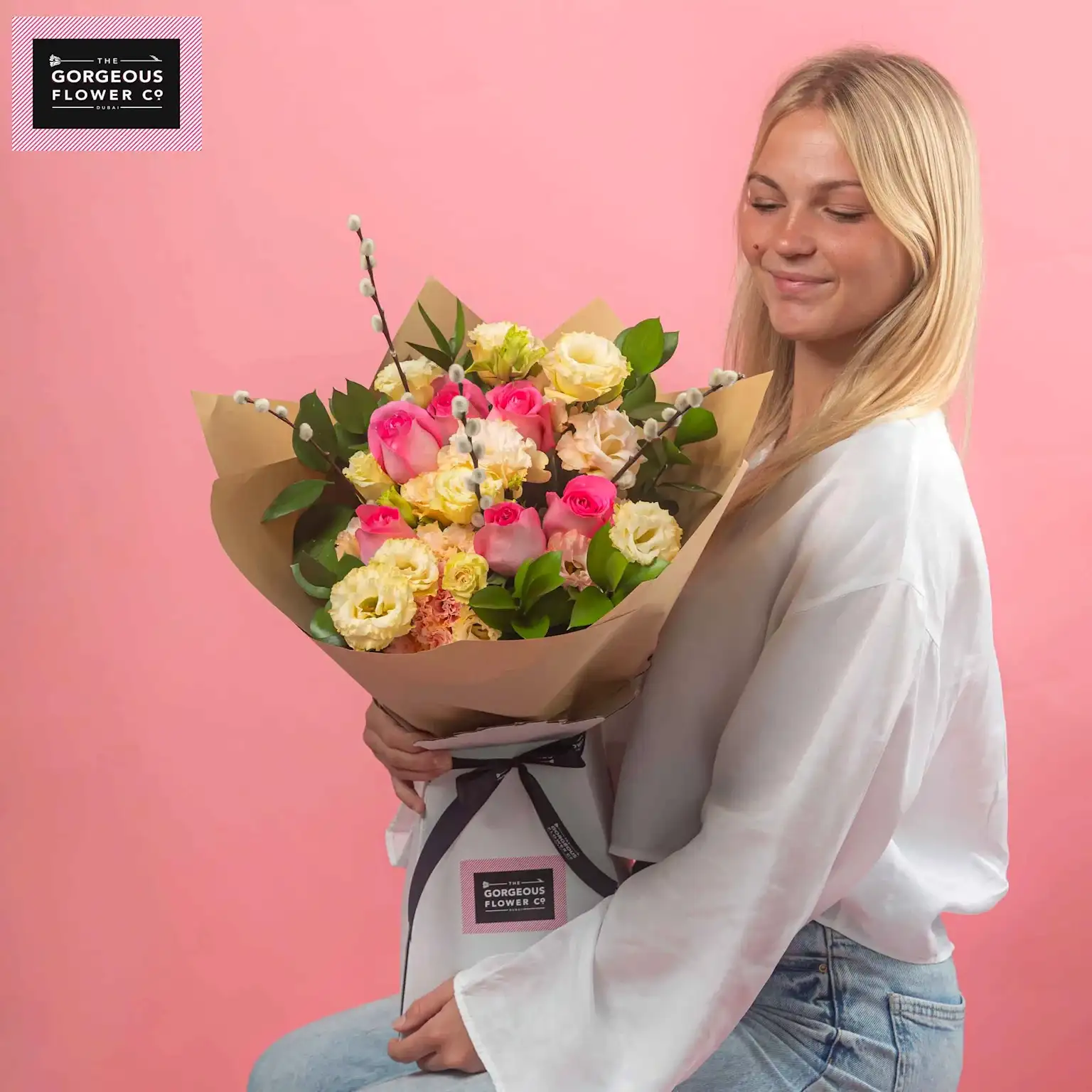 AED250 – AED495Price range: AED250 through AED495Buy NowSelect options This product has multiple variants. The options may be chosen on the product pageGorgeous Garden Pink with Roses, Spray roses, Hypericum berries and Carnations